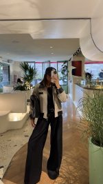 کراپ کت جنس پارچه کرپ کجراه قد کت حدود ۵۵ لایی کشی شده