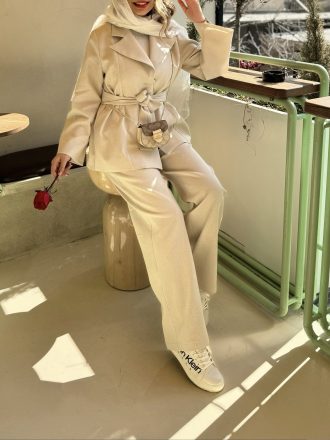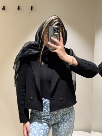 کراپ کت جنس پارچه کرپ کجراه قد کت حدود ۵۵ لایی کشی شده